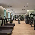 Hay un gimnasio con una amplia gama de deportes.
